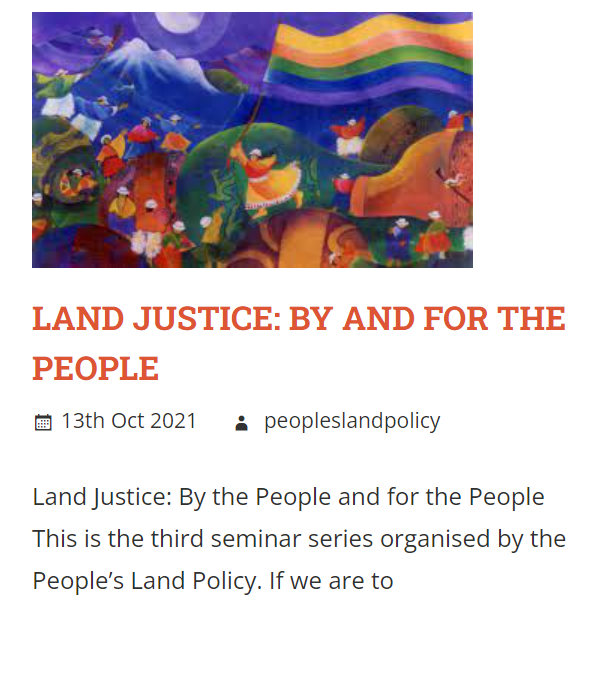 One of the most important issues around the questions Land for what? Land for Whom? is how we make decisions about how land is used. Currently they are made by the landowner and the impersonal forces of the market, with some regulation by the government. However, these decisions are much too important to be left to private interests or a government that may not always be concerned with the needs of ordinary people and communities. So how do we involve everyone in decision-making? This seminar series organised by the People’s Land Policy addressed this issue. Have a look and listen!